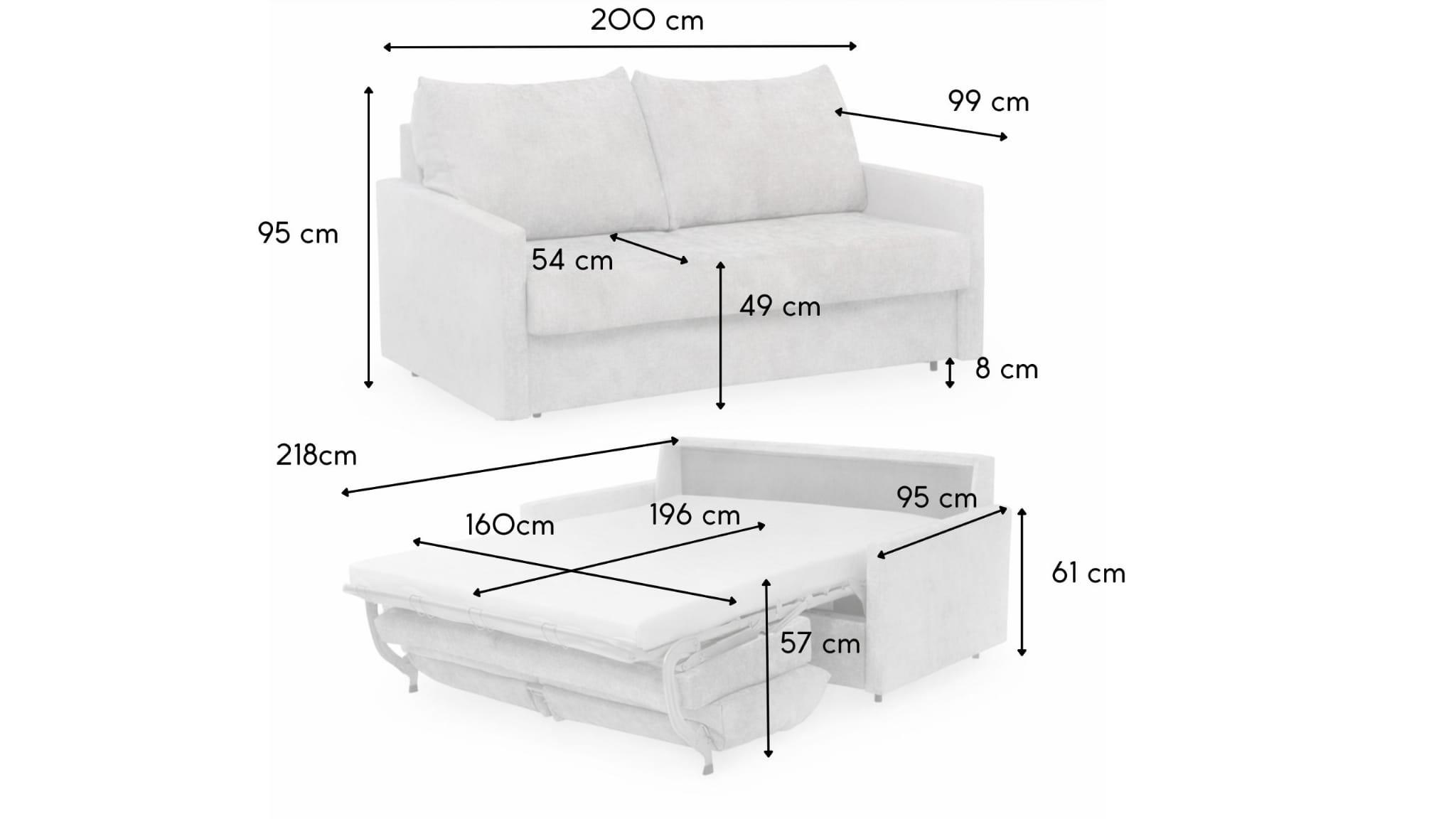 - Powierzchnia spania 160x196 cm