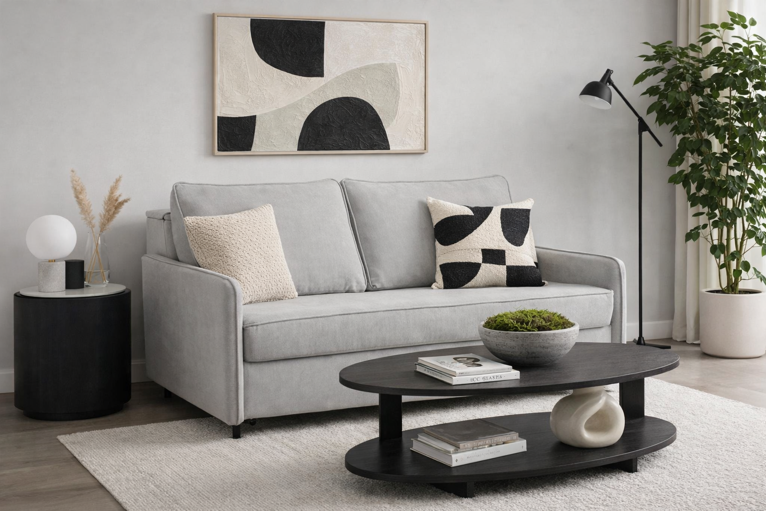 Sofa ze stelażem włoskim Selo Hauss to idealne rozwiązanie dla osób, które szukają mebla łączącego nowoczesny wygląd z codzienną funkcjonalnością. Jej uniwersalny design sprawia, że świetnie odnajdzie się zarówno w salonie, pokoju młodzieżowym, jak i przestrzeni gościnnej. Sofa rozkładana oferuje komfortowe miejsce do siedzenia w ciągu dnia i pełnowymiarowe łóżko na noc. Dzięki wysokiej jakości włoskiemu stelażowi premium z elastycznymi listwami, wypoczynek na niej jest wygodny i odprężający. To sofa do spania, która nie odbiega komfortem od tradycyjnego łóżka sypialnianego. Wbudowany materac składa się razem z mechanizmem, co sprawia, że rozkładanie i składanie sofy jest szybkie i bezproblemowe. Sofa z materacem Selo Hauss to funkcjonalność w eleganckim wydaniu.