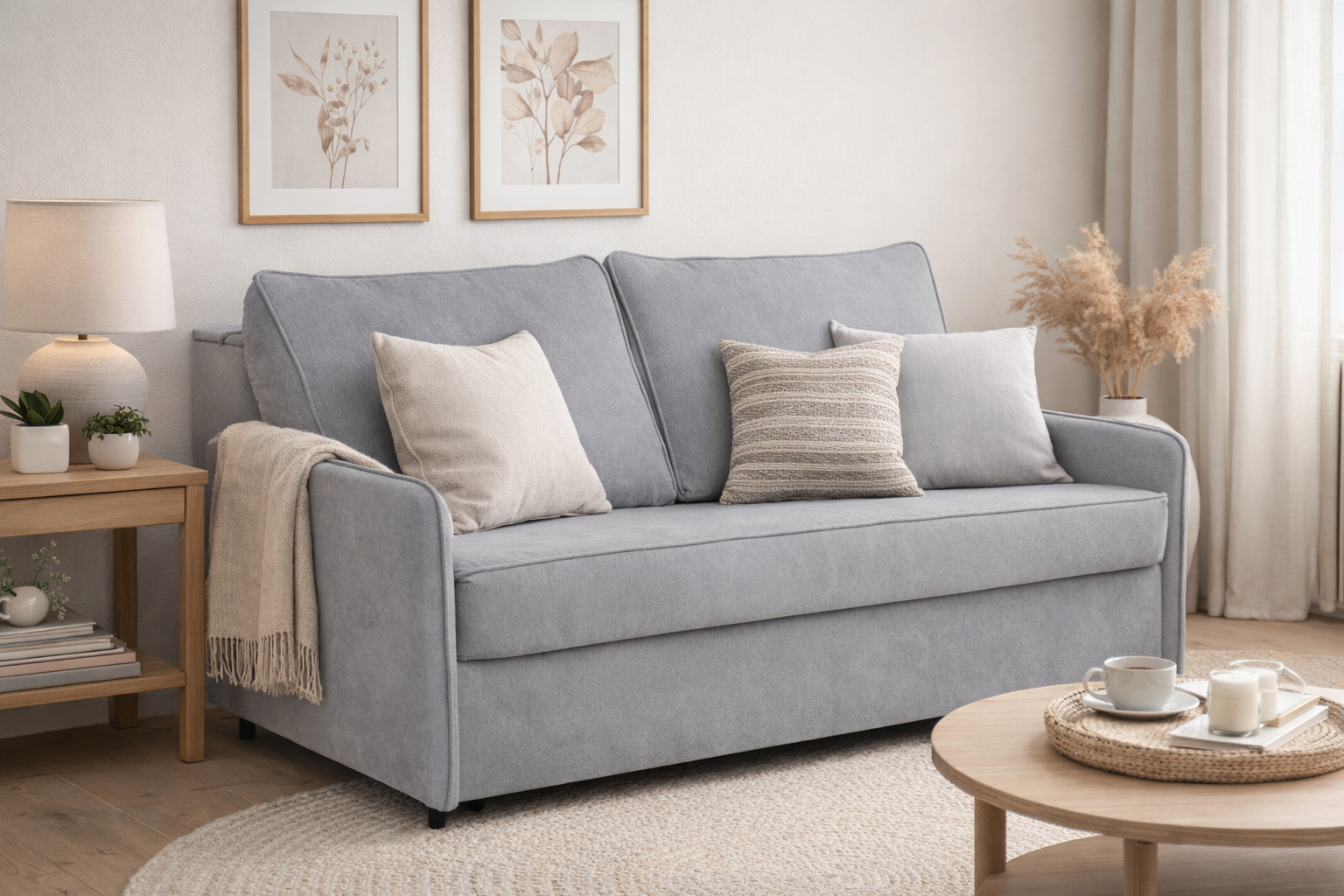 Sofa ze stelażem włoskim Selo Hauss to idealne rozwiązanie dla osób, które szukają mebla łączącego nowoczesny wygląd z codzienną funkcjonalnością. Jej uniwersalny design sprawia, że świetnie odnajdzie się zarówno w salonie, pokoju młodzieżowym, jak i przestrzeni gościnnej. Sofa rozkładana oferuje komfortowe miejsce do siedzenia w ciągu dnia i pełnowymiarowe łóżko na noc. Dzięki wysokiej jakości włoskiemu stelażowi premium z elastycznymi listwami, wypoczynek na niej jest wygodny i odprężający. To sofa do spania, która nie odbiega komfortem od tradycyjnego łóżka sypialnianego. Wbudowany materac składa się razem z mechanizmem, co sprawia, że rozkładanie i składanie sofy jest szybkie i bezproblemowe. Sofa z materacem Selo Hauss to funkcjonalność w eleganckim wydaniu.